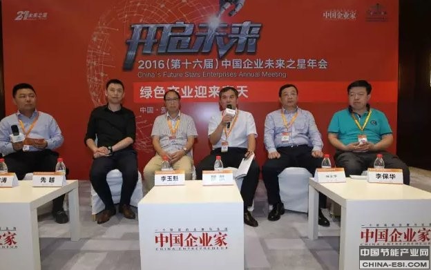 《中国企业家》杂志第十六届未来之星年会 " 绿色产业迎来春天 " 论坛现场,水、气、电等各种新能源领域及机械工业行业内的企业家共同探讨了绿色产业的发展现状和前景,并分享了做绿色产业的心路历程。