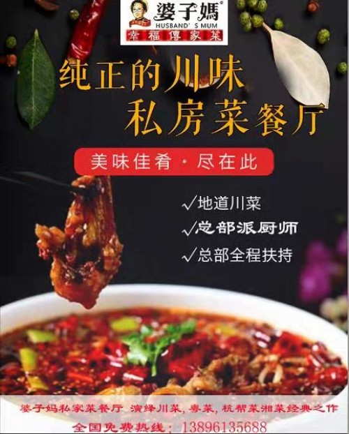 婆子妈川菜中餐厅加盟品牌, 系列产品丰富,口味颇好。