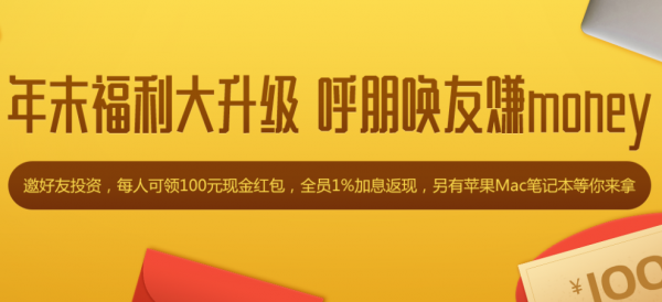 最近,平台活动也较多,老投资人邀请新用户注册投资达标,双方均可获得100元现金红包,投资满额还有丰厚的礼品,近期希望投资赚取额外收益的朋友不要错过。