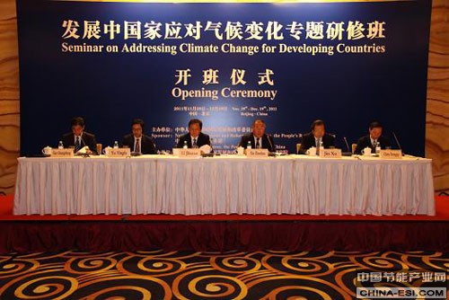 为落实胡锦涛主席2009年联合国气候变化峰会上的倡议,继续坚定不移地为全球应对气候变化做出切实努力,并支持发展中国家提高适应气候变化的能力,2011年11月29日,国家发展改革委、商务部在北京举办了发展中国家应对气候变化专题研修班,国家发展改革委解振华副主任、商务部副部长李金早出席开班仪式并致辞。