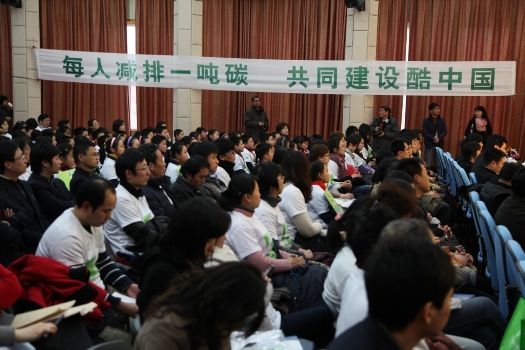 在酷中国项目上海站的启动仪式上,由青年环境友好使者、学校、社区和企业组成的代表宣读了低碳行动倡议书。号召大家从身边的小事做起,“每周绿色出行一天,每周素食一天,每周手洗一次衣服,每周少看一小时电视,每周少搭一次电梯、每周收集一次洗澡水冲洗厕所、每周少喝一个瓶装水”。据专家测算,如果能遵守这些简单的承诺,每人每周可减少22公斤二氧化碳,坚持一年的话,一人就可以为地球减排一吨二氧化碳。每个人可以通过自己的实际行动,为实现国家“十二五”期间单位国内生产总值能源消耗降低16%、单位国内生产总值二氧化碳排放降低17%的减排目标以及减缓全球变暖做出贡献。