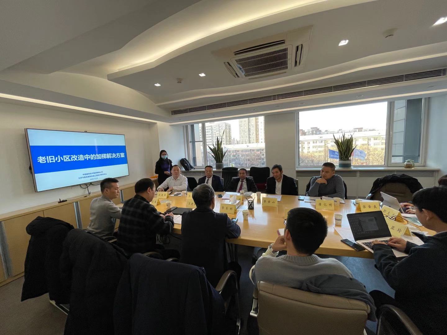 2020年12月24日下午,中升乙源建设工程有限公司与中国建设技术集团有限公司在京召开城市更新与既有建筑改造业务交流会。中国建筑技术集团有限公司总工程师李东彬,中技集团工程技术研究院总工程师王建军,中技集团工业化建筑技术研究所主任李伟龙,中技集团工业化建筑技术研究所推广中心主任杨昌海,中升乙源建设工程有限公司董事长陈大顺,副董事长李金山,总经理李大建,副总经理唐亿明,市场部经理杜建秀,技术人员孙亚玲、郭天兰等人出席了此次业务交流会。