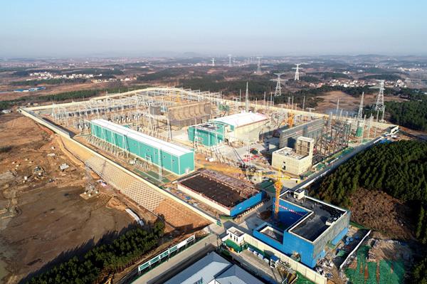 2021年1月1日,±800千伏武汉特高压换流站建设现场,国网湖北送变电工程有限公司300多名施工人员放弃假日休息,加紧站内施工。