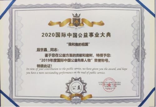 在工作之余,段宇晶还热衷于公益事业,从2009年接触国际公益组织“狮子会”到现在,十二年来,段宇晶累计捐款超过50万元,参加公益活动已经成为了她生命中不可或缺的一部分。段宇晶常说,“企业家理应承担起相应的社会责任,要用商业上的成就来回馈社会,做到公益、商业两不误。”因为总是活跃在公益活动的第一线,她连续四年被任命为“中国狮子联会”北京关爱委员会主席,朋友们还送给她一个雅称“公益段爷”。