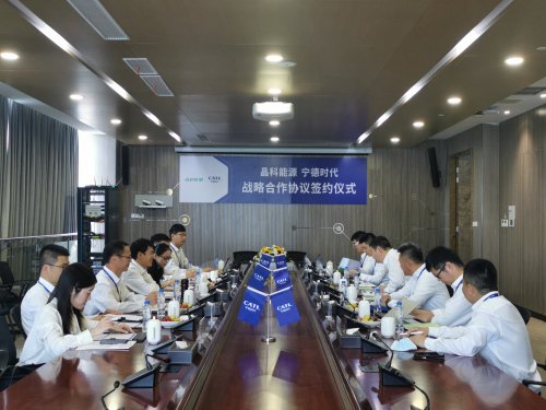 8月31日,晶科能源股份有限公司(简称“晶科能源”)与宁德时代新能源科技股份有限公司(简称“宁德时代”)在福建宁德签订战略合作协议。晶科能源首席执行官陈康平、副总裁钱晶、副总裁王发万,宁德时代总裁周佳、首席客户官&储能事业部总裁谭立斌、储能业务部总经理朱岩松等领导出席本次签约仪式。