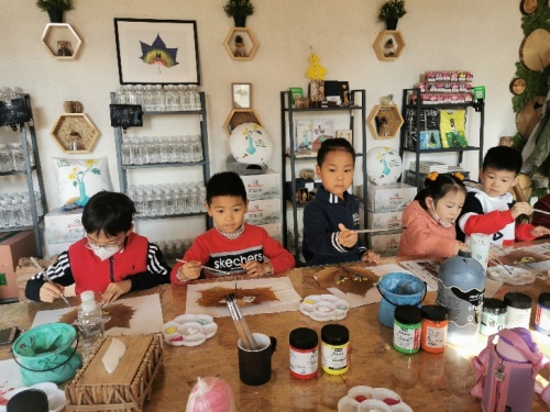11月13日上午,在青岛市互联网+全民义务植树第一绿色驿站里,市实验小学一年级四班的同学们走进“落叶魔法师学院”,在青岛知名文创师-刘萍老师的带领下进行了一场落叶上的“假面舞会”。他们化腐朽为神奇,用落叶画的形式温暖地拥抱初冬。
