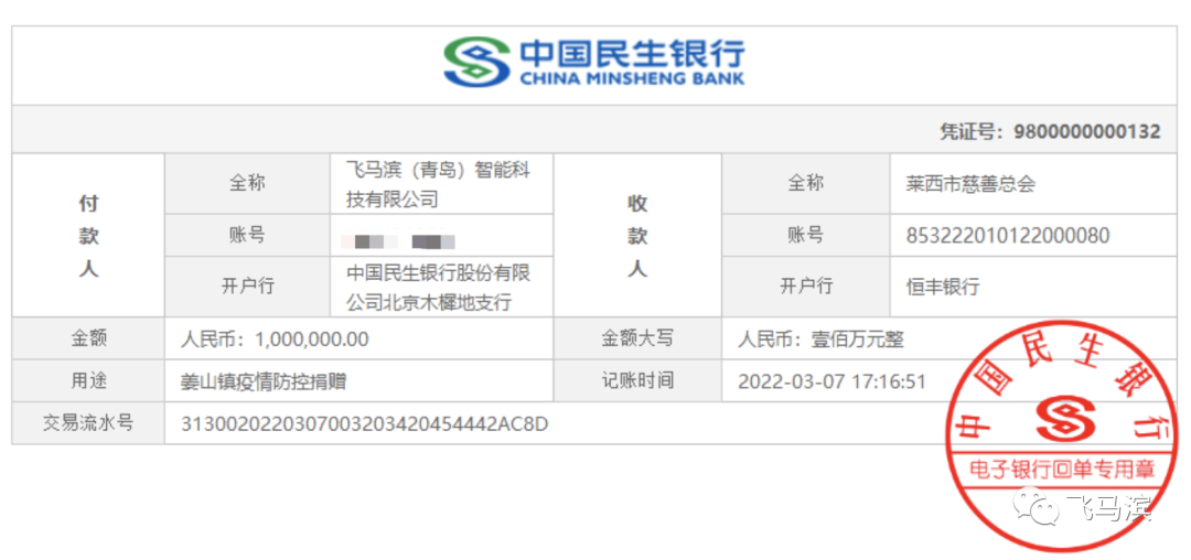 面对突如其来的疫情,让一年多无新增的岛城掀起新一轮抗疫。面对不断新增的确诊病例,飞马滨(青岛)智能科技有限公司于3月7日,通过莱西市慈善总会已将100万元人民币捐献给莱西市新型冠状病毒感染肺炎疫情防控指挥部,飞马滨始终坚持和广大群众站在抗疫第一线,努力用实际行动履行企业的社会责任,助力本轮抗击新冠疫情防控,做出本土企业应有的贡献。
