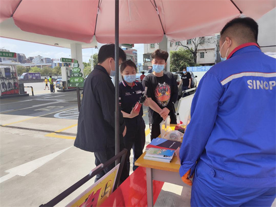 各加油站围绕疫情防控期间开展消费维权宣传,员工及配送油品司机严格执行体温必测、口罩必戴,完成扫描“场所码”打卡登记及查验绿码无误等措施,保证疫情防控期间销售产品质量过关、供应充足。