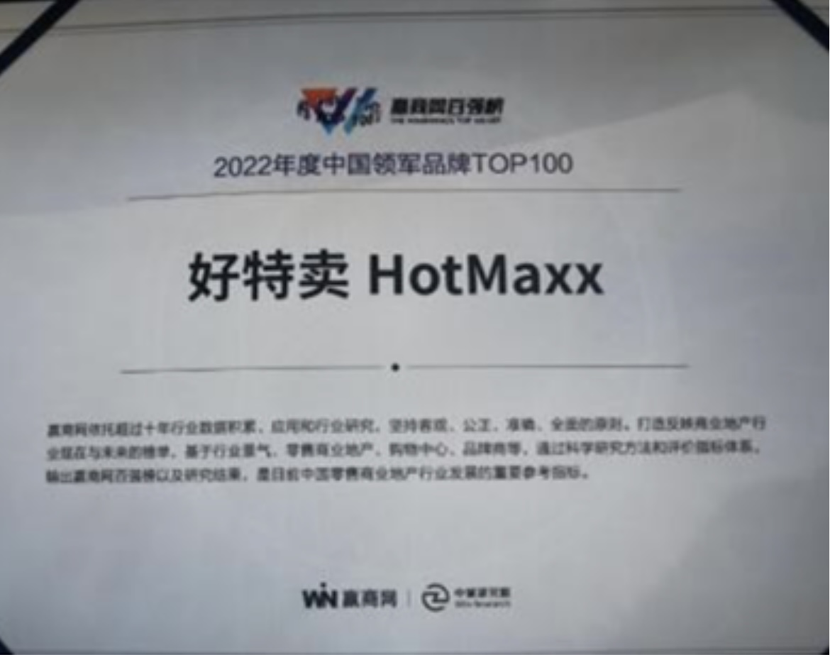好特卖HotMaxx作为新兴的百货超市,近些年来始终积极整合过剩资源,寻找特价零售产品、生产过剩产品以及经销商积压库存产品的全新出路。不仅受到了年轻人的广泛追捧,更在北京、上海、深圳、广州等多个城市布局了多家门店,此次上榜2022年度中国领军品牌TOP100榜单可谓实至名归。