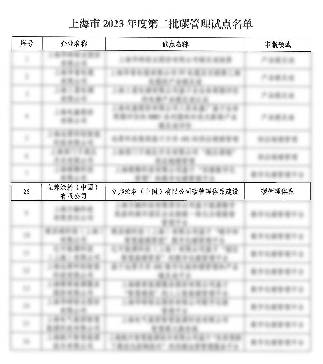 探索推进碳管理体系建设,立邦再次入选“上海市工业通信业碳管理试点名单”
