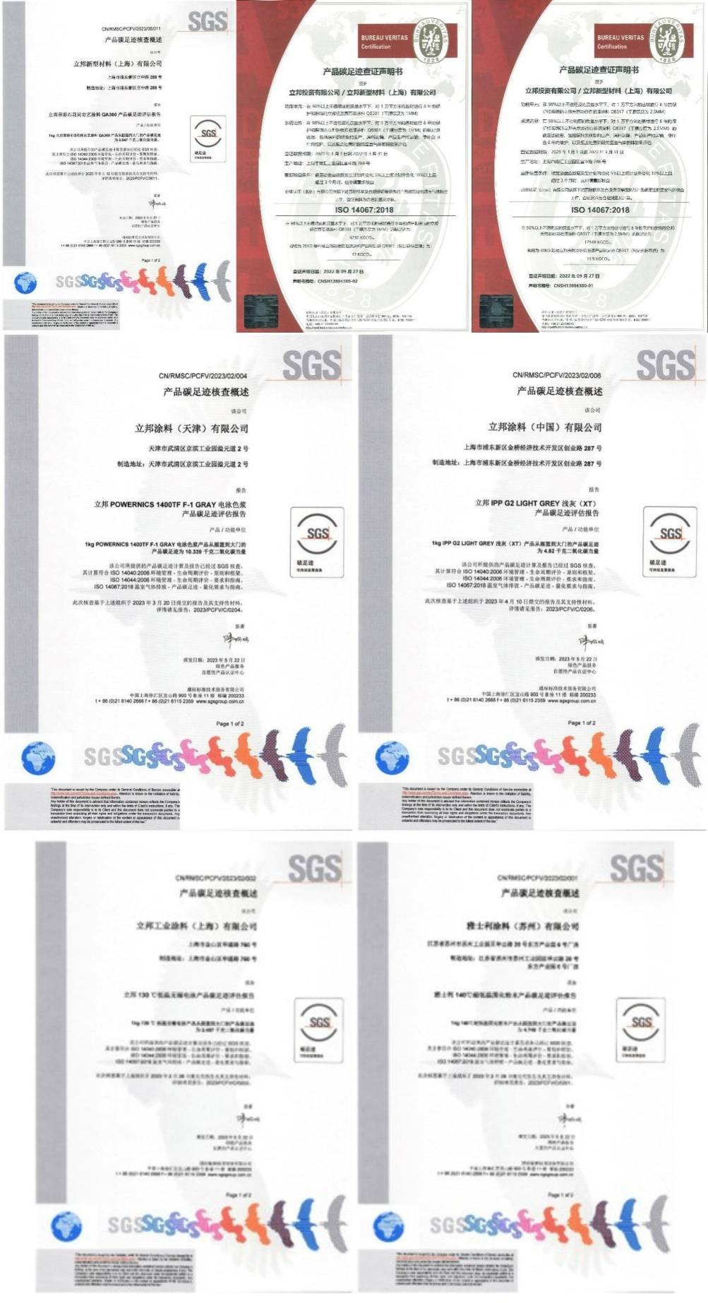 建筑领域:立邦荣彩石等产品共获得9个认证;