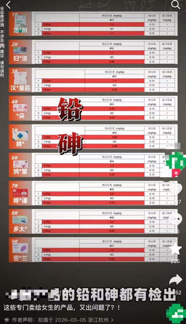 然而,实验室检测结果令人大跌眼镜。在微生物检测中,9款产品中仍有1款细菌菌落总数不合格。更讽刺的是,在重金属检测环节,9款产品全部检出铅、砷等物质。