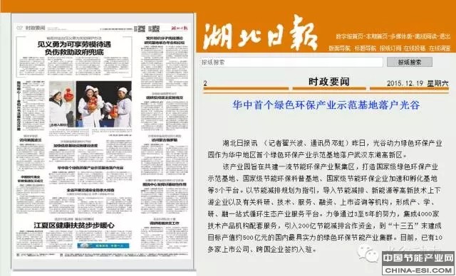 1.12月18日,光谷动力绿色环保产业园作为华中地区首个绿色环保产业示范基地落户武汉东湖高新区。