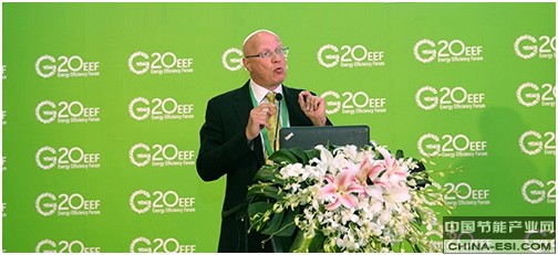 国家发改委资环司节能处处长赵怀勇,则向与会者详细介绍了“G20能效引领计划”产生的背景、取得的成果。赵怀勇表示,G20在全球经济和能源发展中占据重要地位,一次能源消费量超过全球的80%,温室气体排放占全球总量的80%左右,G20有志于在引领全球能效提高,以及增加能效融资、开发先进技术等利用本国资源实现可持续发展方面发挥表率作用。
