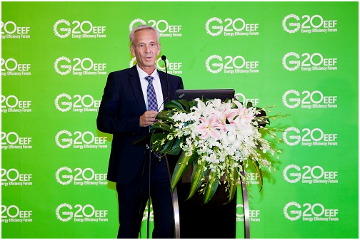 BIERMANN,作为了题为“德国视角,通过构建国际能效中心推动G20合作”的主题演讲,他表达了对G20提高能效的建议,并提出,今年中国作为G20能效论坛的主办国,在提高能效上作出了杰出贡献,德国非常愿意接过接力棒,继续将提高能效作为永远的使命。他带领与会者回顾了从2014年至今20国集团在能效合作上作出的行动,包括《能效行动计划》、《G20能效引领计划》等。他建议将德国发展成国际能效中心,并明确了德国未来努力方向,德国将与其他合作伙伴一同将合作愿景转化为共同行动。