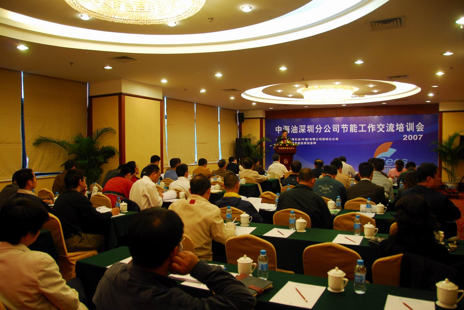 2007年11月29日-30日,中国海洋石油(中国)有限公司深圳分公司在深圳市明华国际会议中心召开了本年度节能工作交流培训会,分公司领导、各作业区领导和主管节能减排工作的负责人参加了会议,会议还特别邀请了国家发改委环资司主管节能工作的领导、中国节能协会、中国节能监察信息网专家出席会议。省节能中心陈健主任、曹海滨副主任、陈仨珂经理与会。