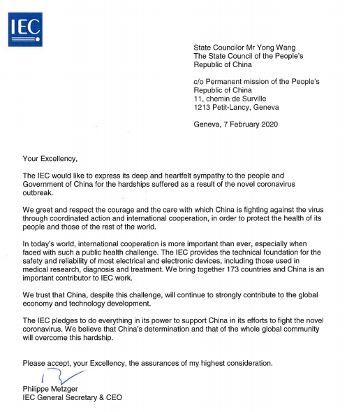 IEC秘书长发表公开信:全力支持中国抗击新冠肺炎