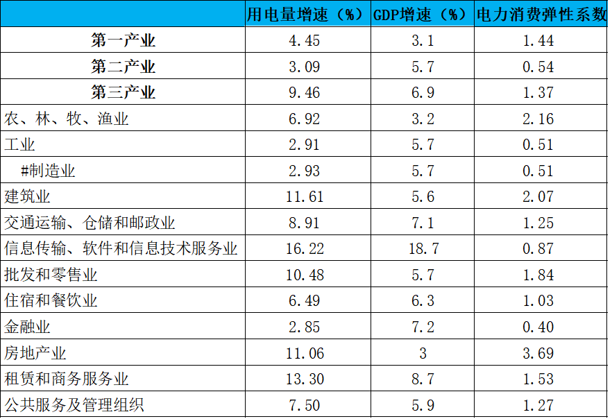 由上图可见,2019年全国信息传输、软件和信息技术服务业的用电增速最高,达18.7%,而房地产业用电增速最低,仅3%。