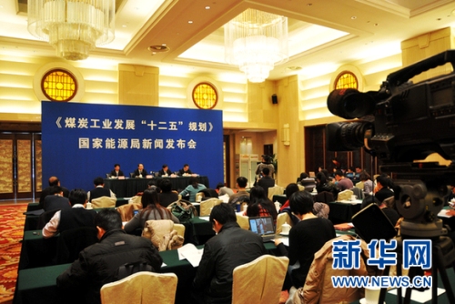 2012年3月22日(周四)上午10:00,国家能源局在职工之家召开新闻发布会,发布《煤炭工业发展“十二五”规划》,并回答记者提问。图为新闻发布会现场。
