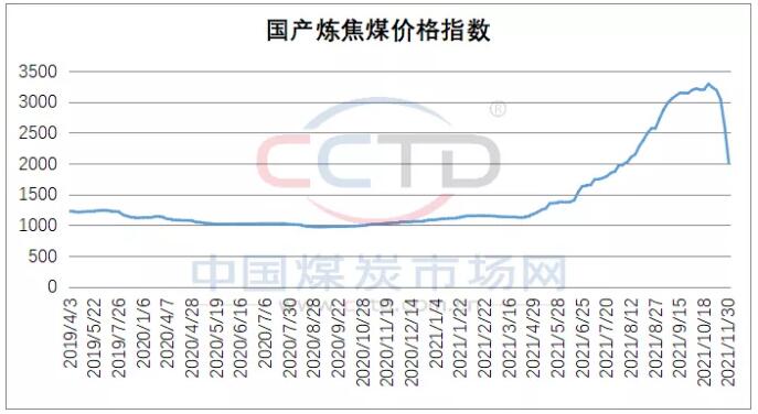 与焦炭上涨的逻辑不同,这次焦煤价格大幅下降,是受到三个方面的影响:一是国家政策出手打压电煤价格至合理回归,不到一个月的时间就从2300多元下滑到900多元,尽管国家对焦煤并没有实施价格监管,但在政策的引导下,钢厂限产、焦化限产,需求快速下降,焦煤的价格中枢也随之下移;二是焦炭价格8轮降价1600元,受此拖累直接把焦煤价格给拉了下来。焦炭之前的上涨是焦煤价格不断推动的结果,成本推动焦炭成本大幅上升,价格随之高举。而这次焦煤价格回落,却是焦炭价格走低,拉低了焦煤价格,通俗讲就是焦炭压着焦煤走;三是期货市场巨幅下挫,现货价格快速跟进。焦煤2201合约从10月19日的最高点3878元,至2021年12月6日下午收盘2058元,巨幅下降1829元或46.9%。目前焦煤价格以临汾为代表的低硫主焦煤也从4600元下降至2400元,几乎被腰斩。
