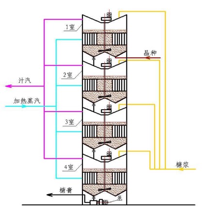 通过利用新型连续煮糖罐(包括立式和卧式)代替现有间歇煮糖罐,罐内糖膏液位低,循环好,加热蒸汽压力仅需0.09MPa即可满足生产需要,有效降低了制糖过程的耗汽量。实现煮糖过程的连续化和自动化,解决了我国糖厂间断煮糖生产波动大、不稳定的问题。