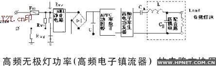 在使用频率较高情况下,要使开关速度加快,必须有较大的驱动电流和小的输入阻抗,在设计ZVS零电压开关时,应注意这个基本原则。一个比较完整的高频无极灯电子镇流器如图(4)所示。